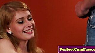 Еякуляція кількох чоловіків на обличчя однієї жінки